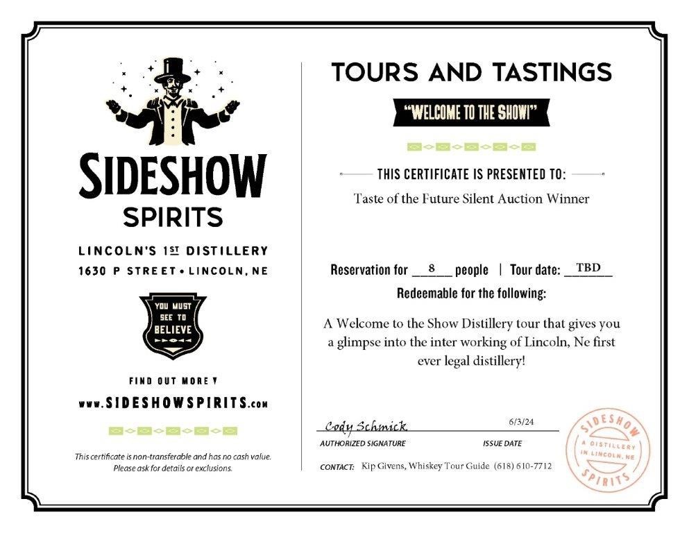 Donated by: Sideshow Distillery Spirits & Cocktail Bar