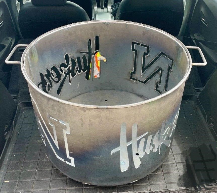 Make your backyard your own tropical paradise with a metal handcrafted fire pit that has the Nebraska Huskers logos on it!