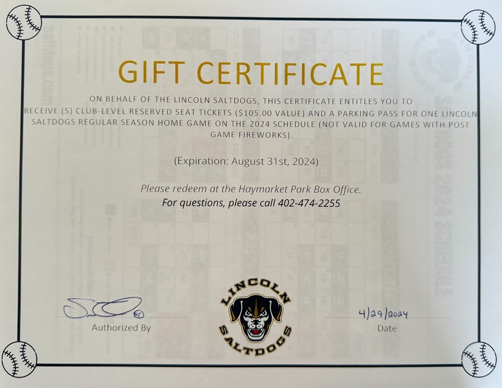 Have a fun day with the family with 5 Club Level Reserved Tickets to the Lincoln Saltdogs and a $25 gift card to Runza for afterwards!