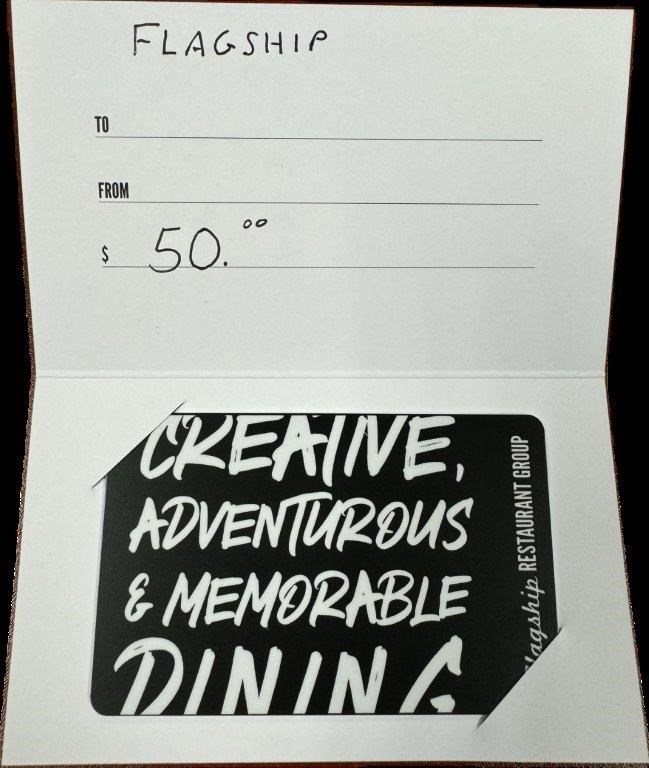$50 Gift Card to any Flagship Restaurant. Blue, Roja, Blatt, Plank, Flagship Commons, Anthem and more.